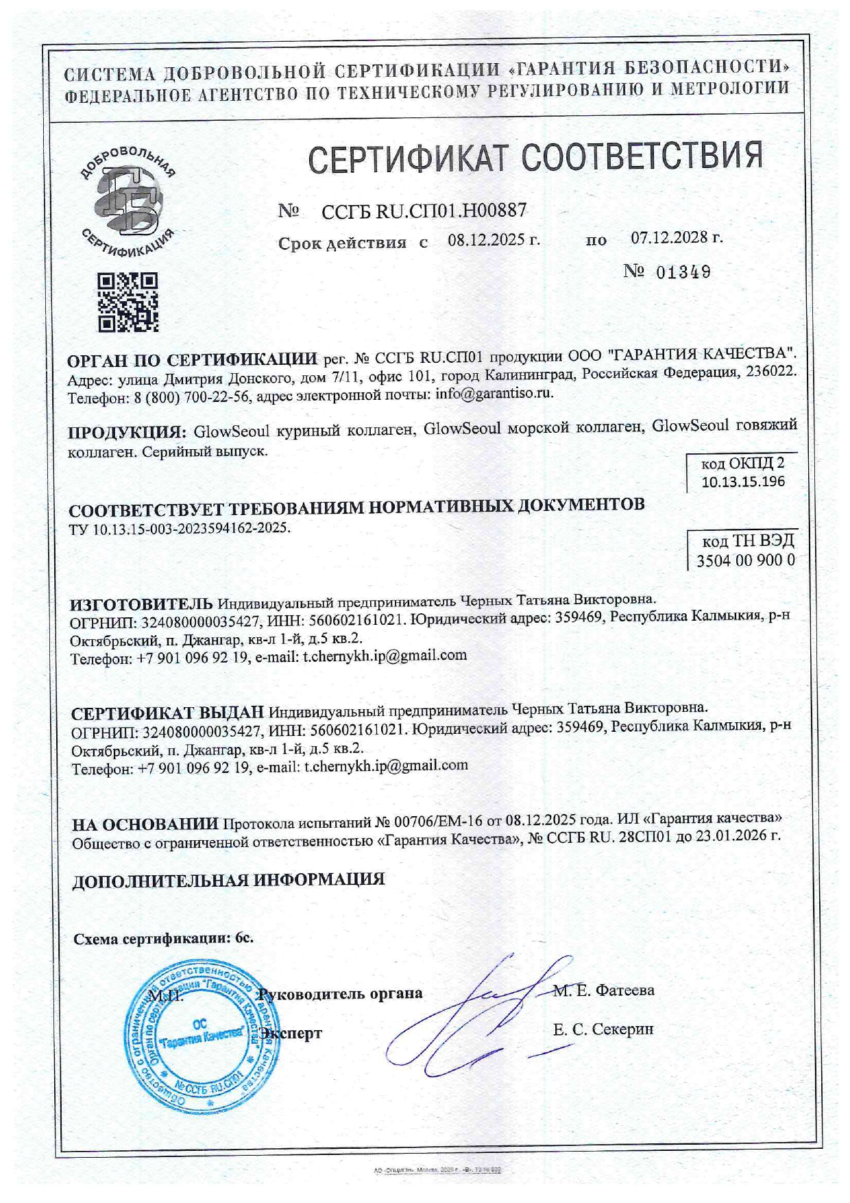 Каждая партия GlowSeoul проходит лабораторный контроль на соответствие сертификату ССГБ.RU.СП01.